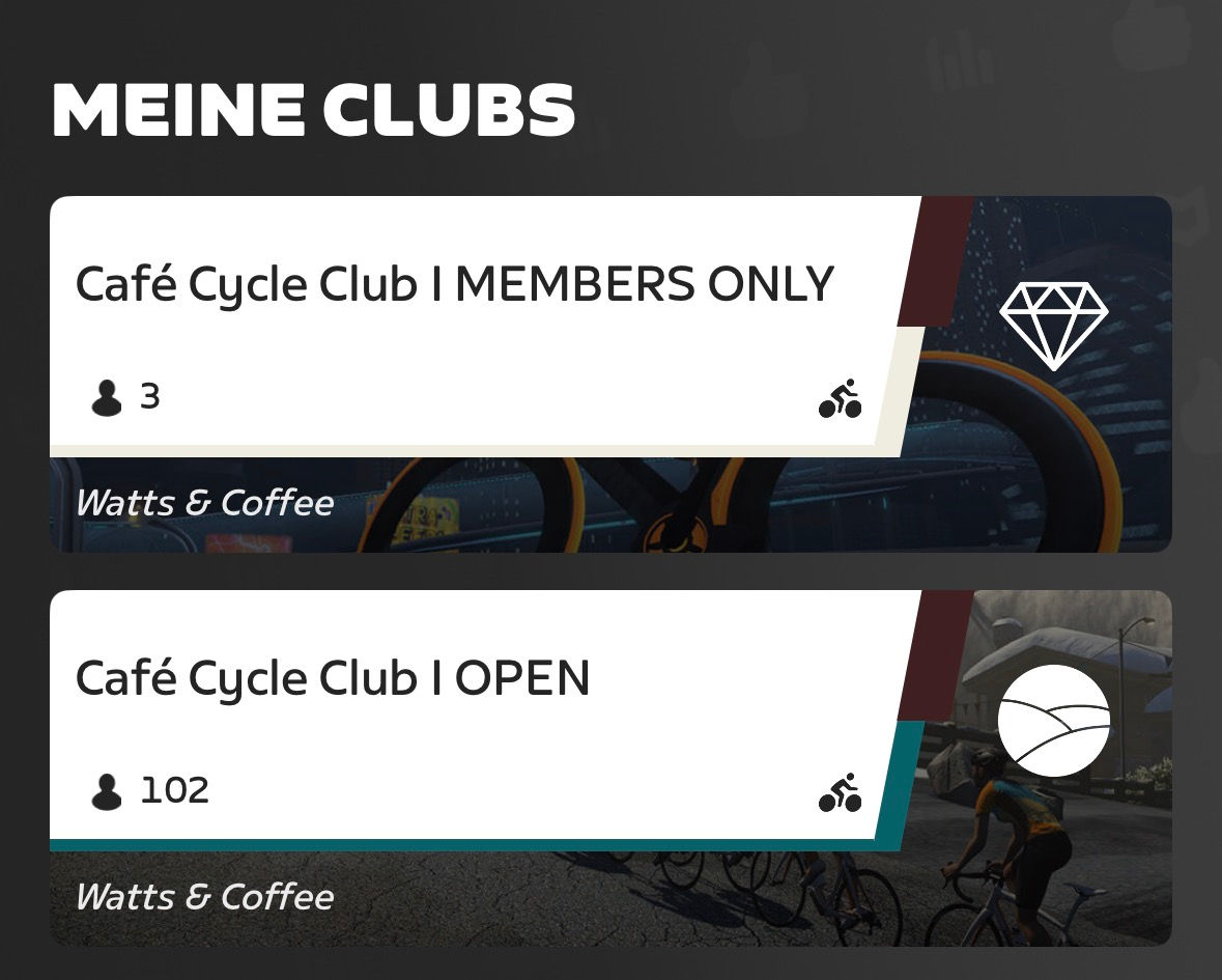Um jenes zu erhalten, was wir bisher hatten, haben wir einen weiteren Zwift-Club erstellt. Er trägt den Namen „Café Cycle Club I MEMBERS ONLY“ Dieser ist exklusiv für euch, also alle, die auch wirklich Member in unserer schönen Community sind. Wir wollen uns dadurch vorbehalten, weiterhin clubinterne Online Rides (z.B. Thrill or Chill, Badge Hunting, Gruppen-Trainings etc. anzubieten). Außerdem werden auch Event-Rides, die wir oder unsere Ride Leader/Gravel Guides verlegen müssen (z.B. aufgrund des Wetters) selbstverständlich in den MEMBERS ONLY Club gepostet.